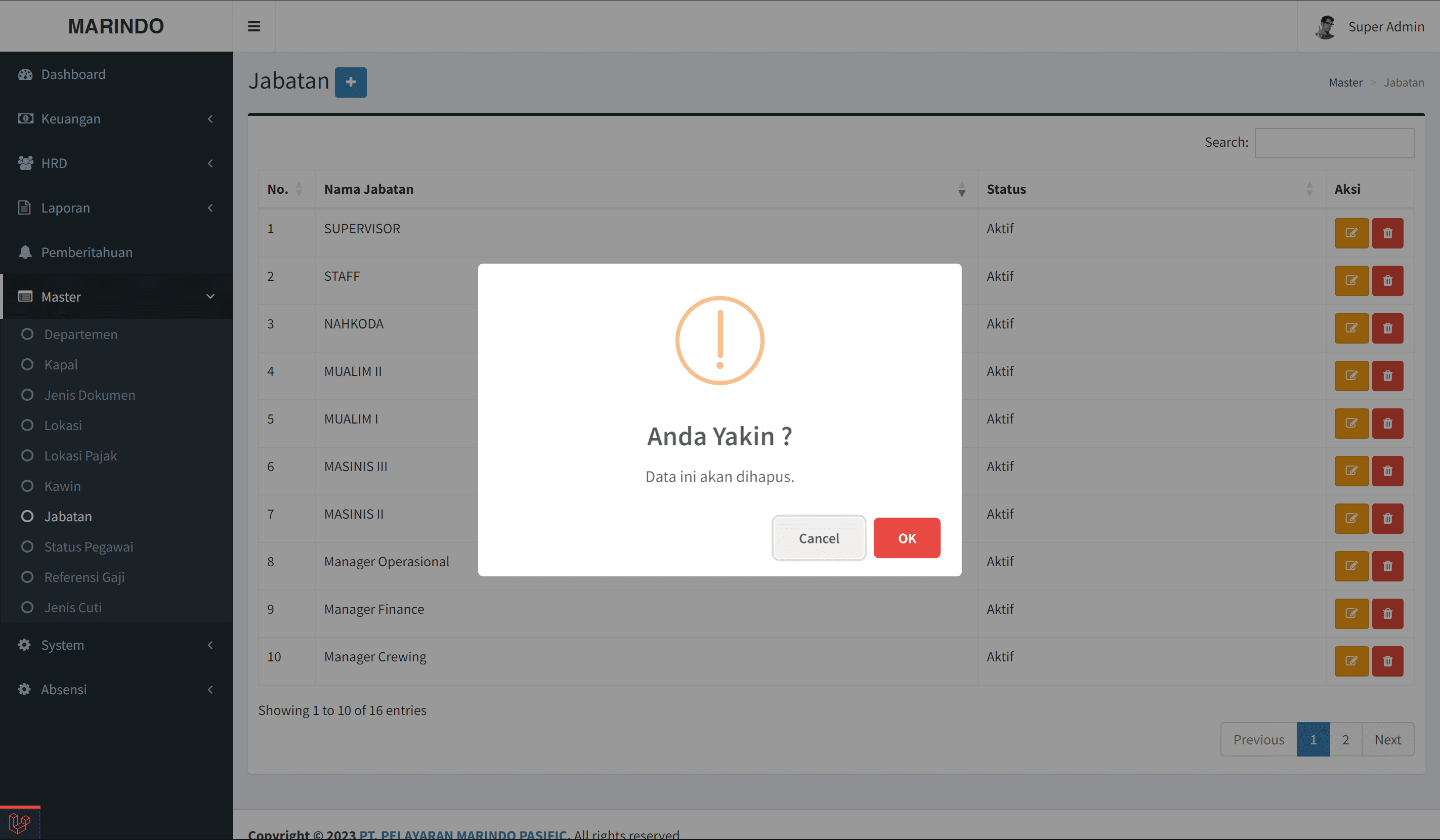 Data pengaturan absensi untuk MARINDO PAYROLL